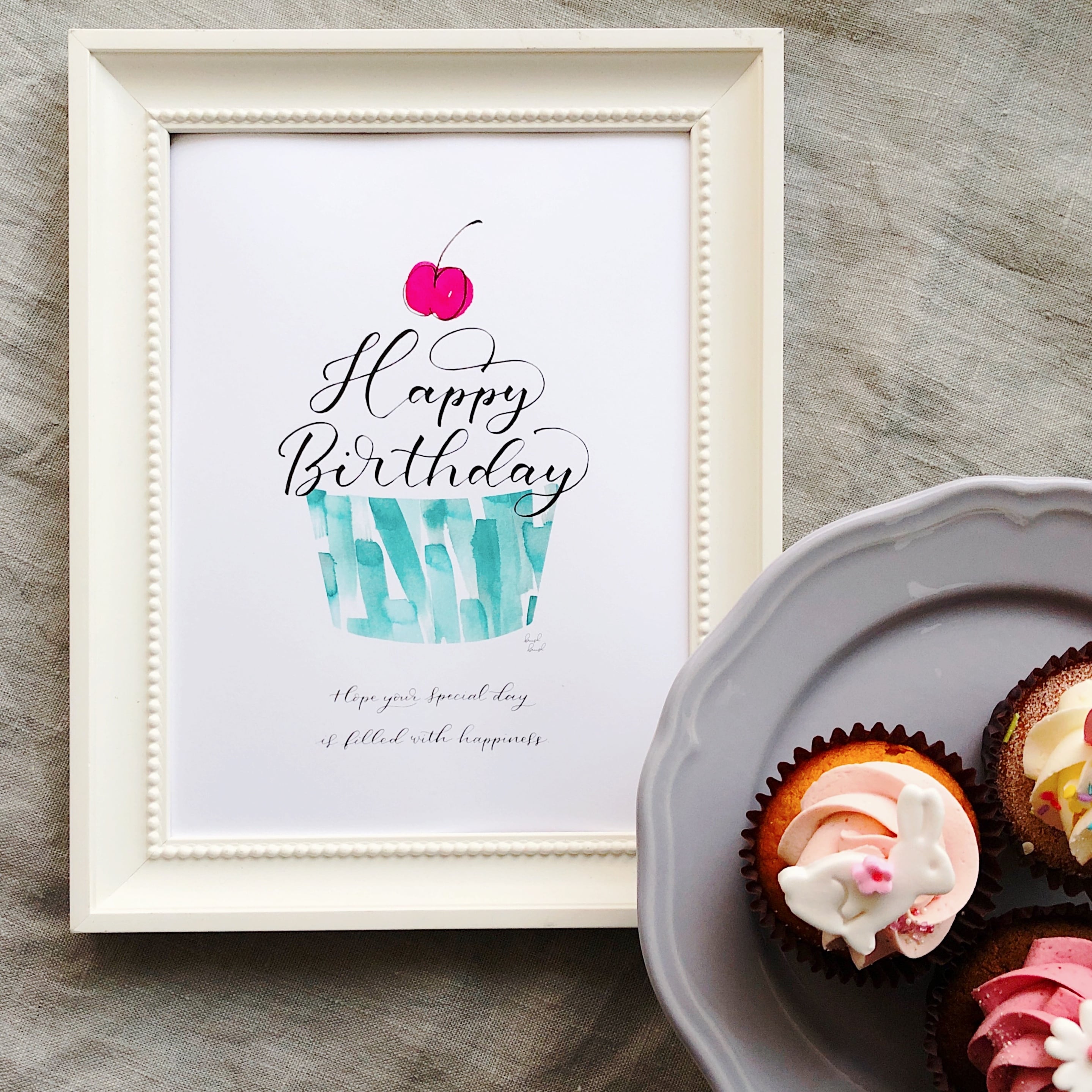 Happy Birthdayのメッセージをクリームに見立ててデザインしたカップケーキが可愛いポスター。